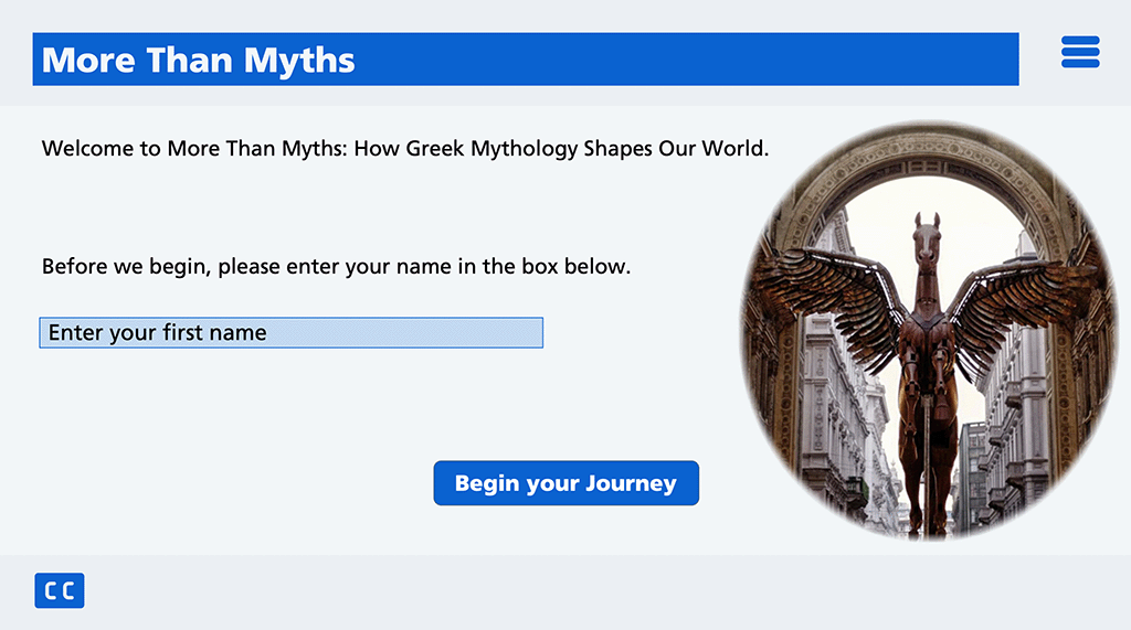 This Articulate Storyline project introduces the learner to the world of Greek mythology and provides connections to our modern world.